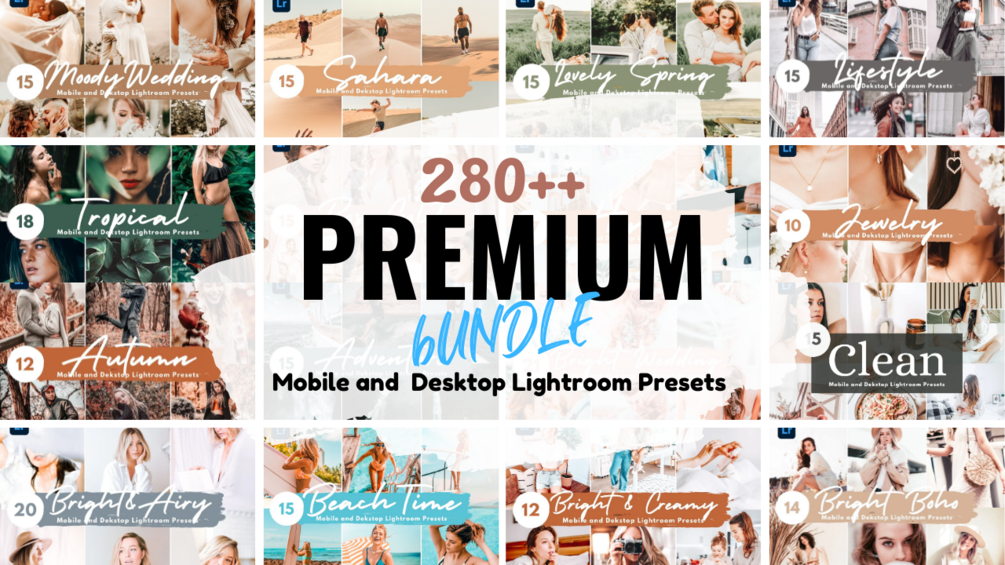 280++ PREMIUM BUNDLE Lightroom Presets for Mobile App and Desktop